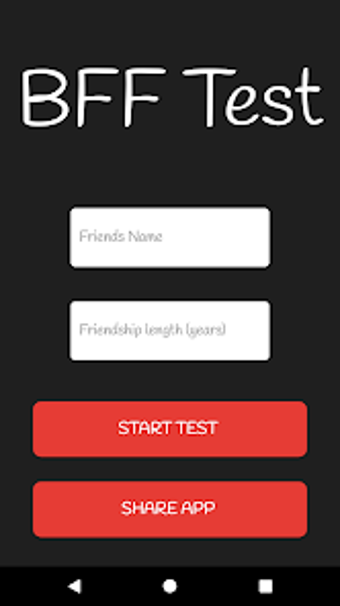 BFF Friendship Test is een gratis Android-app die gebruikers de mogelijkheid biedt om de kracht van hun vriendschap te meten. Door een reeks vragen over je beste vriend te beantwoorden, genereert een uniek algoritme een score die de vriendschapssterkte aangeeft. De app is ontworpen voor vermaak en biedt elke keer unieke vragen, waardoor elke test een nieuwe ervaring biedt.